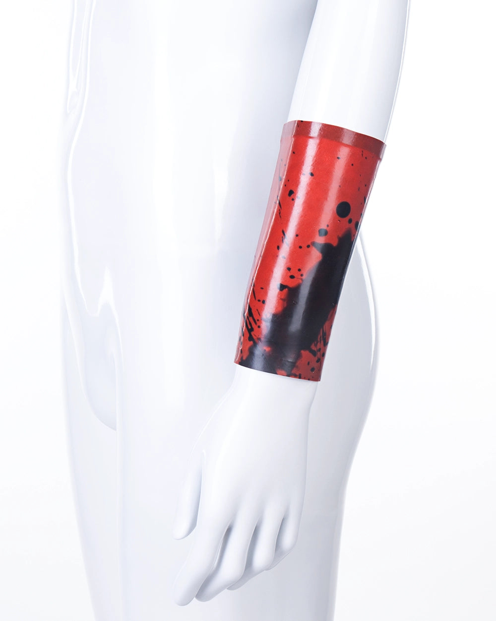 Set of wide latex bracelets with matching bleacher detailing. Designed to complete your outfit with an edge.