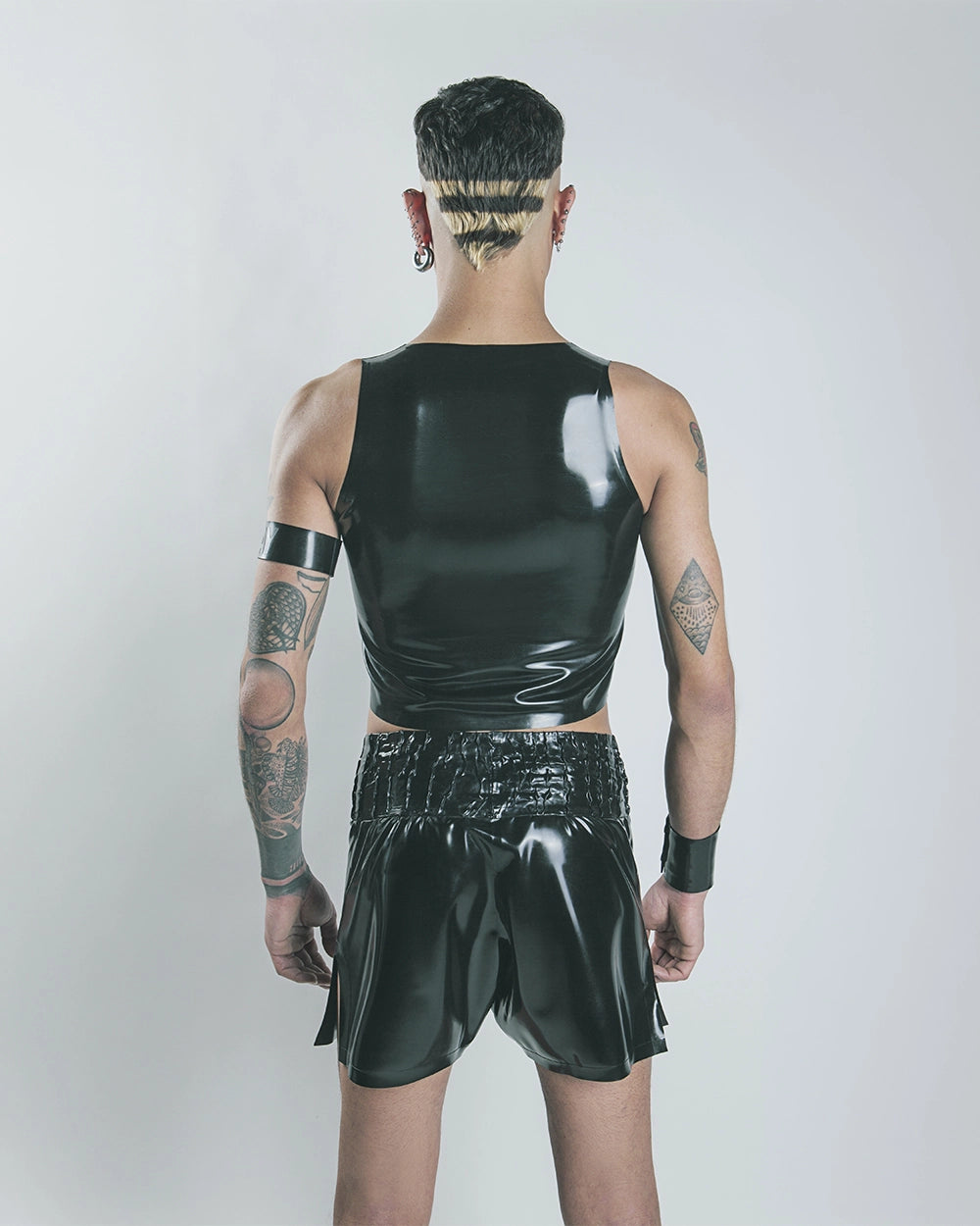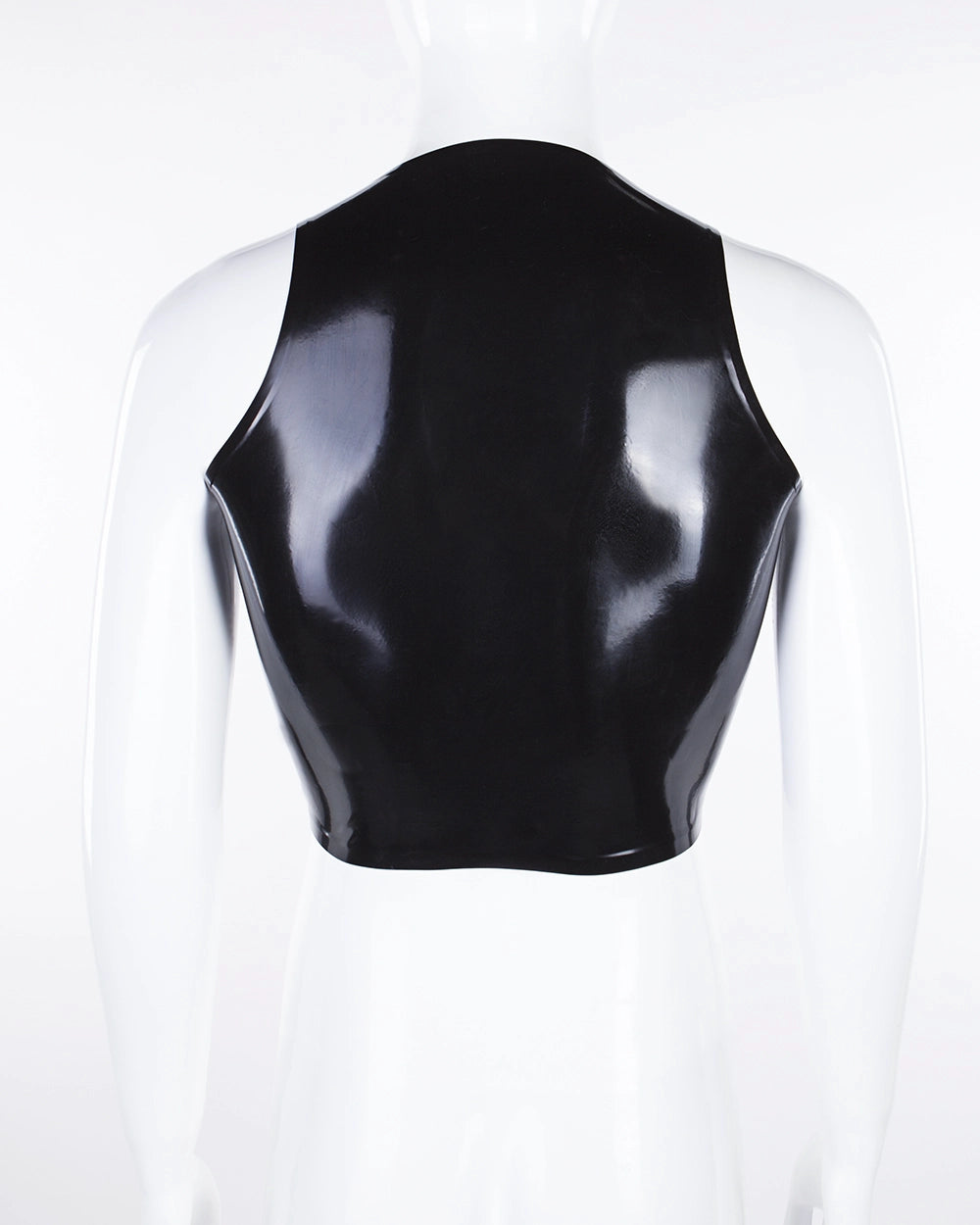 Cropped latex tank top crafted in high quality latex with a clean pull on design. Cut to sit above the waist, it offers a sharp and versatile proportion that works effortlessly as a standalone piece or layered within a wider look.