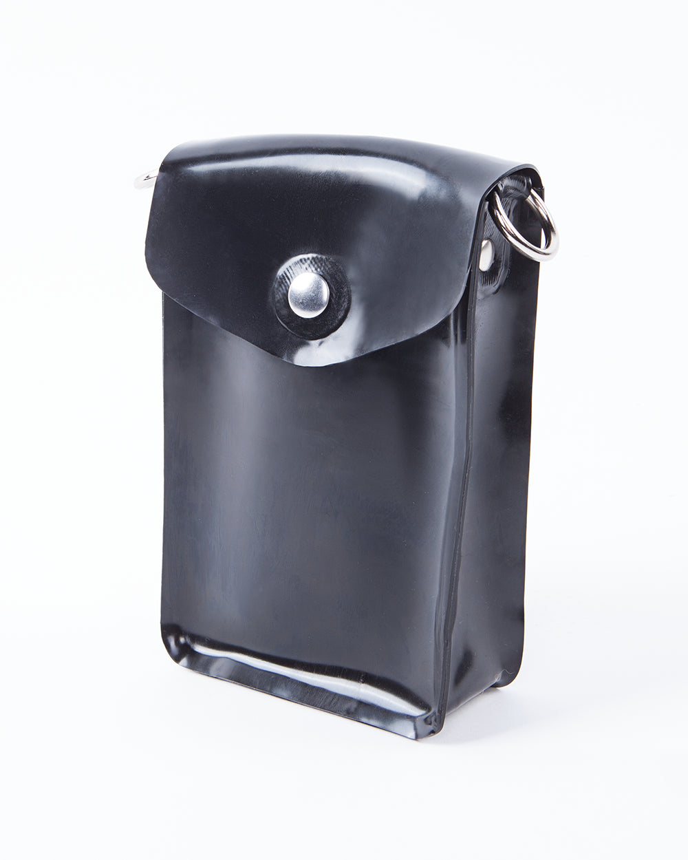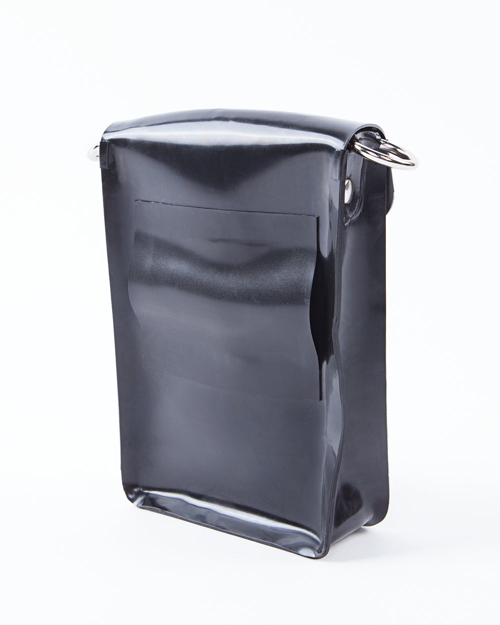 It features two removable latex mini purse attached with metal clips, offering practical storage while reinforcing the tactical character of the piece. The central back O ring connects the straps cleanly and allows the harness to maintain its shape during wear.