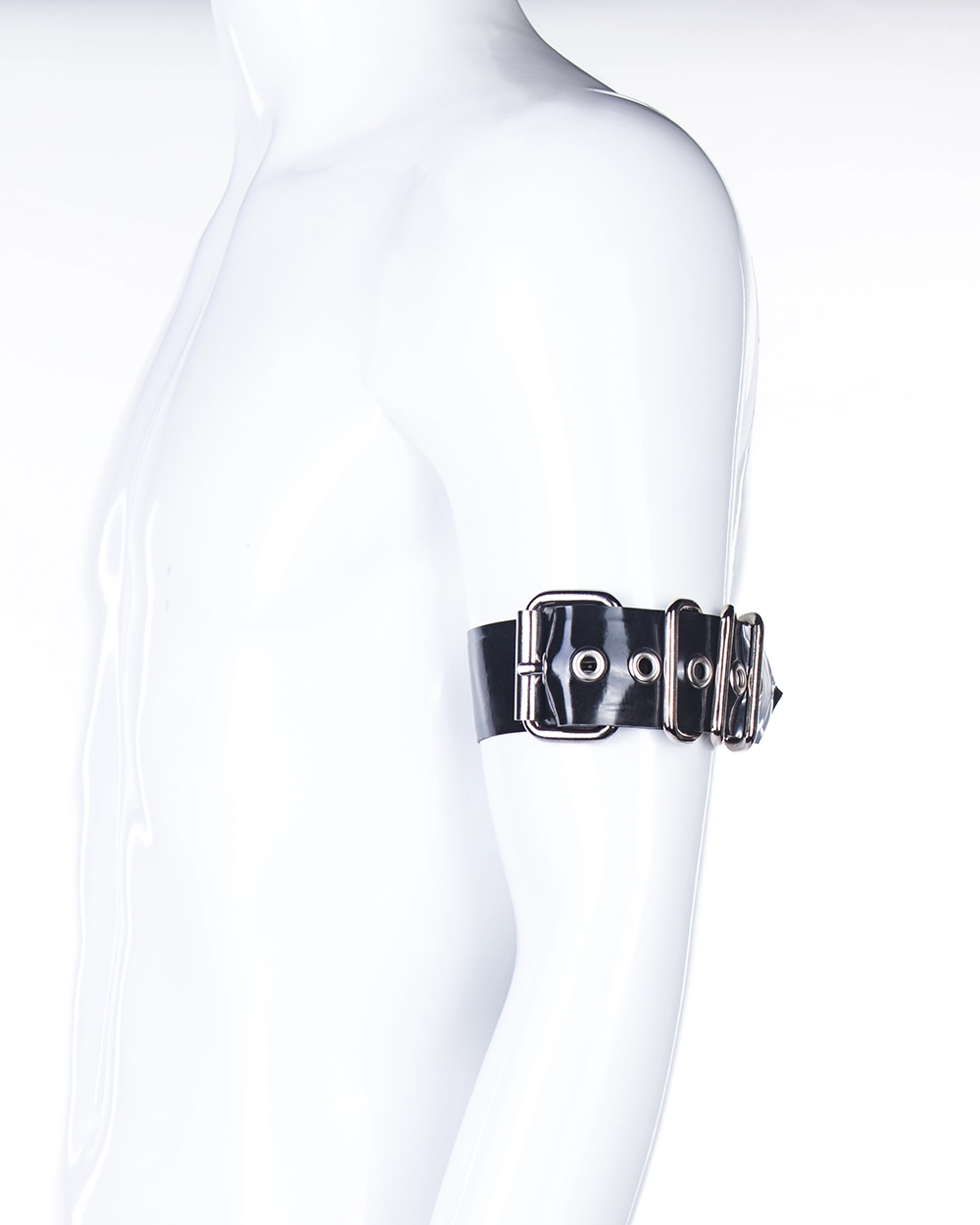 Kei bicep bands crafted from high-quality latex, designed to wrap the arm with a touch of sophistication and rebellious flair. Each band features a 4 cm (1.6”) wide buckle and three loops, allowing for a secure and adjustable fit. This accessory can be worn over other garments or directly on the skin, adding a distinctive, edgy detail to any outfit.