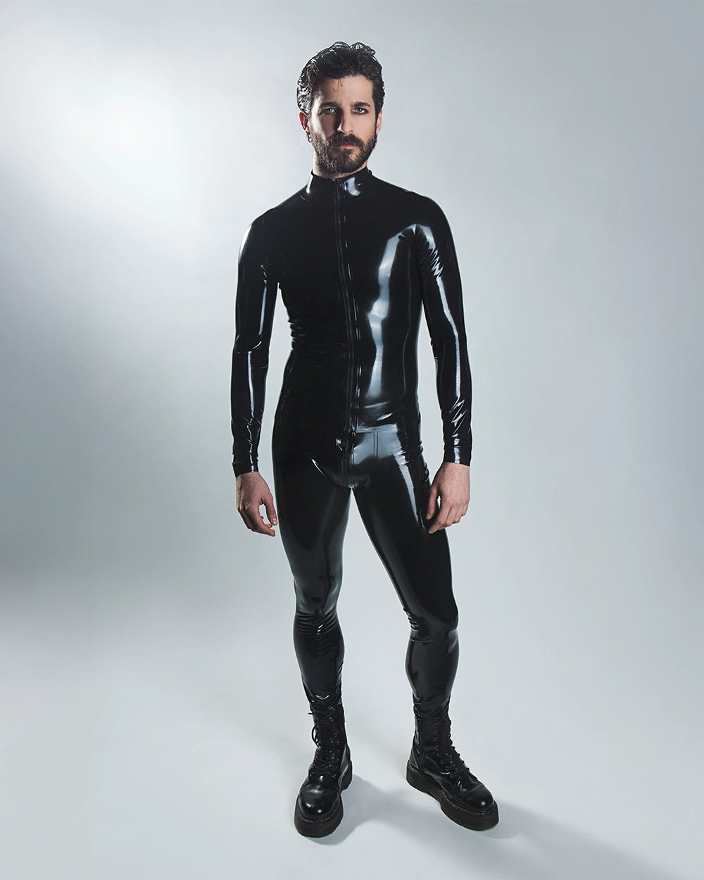 These fitted leggings sit below the hip features an end-to-end zipper. Can be ordered in various color options.