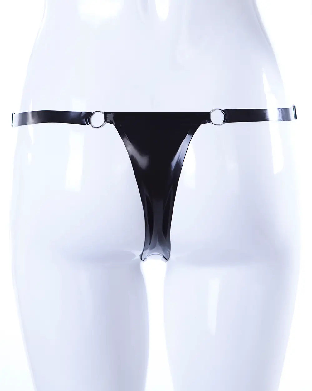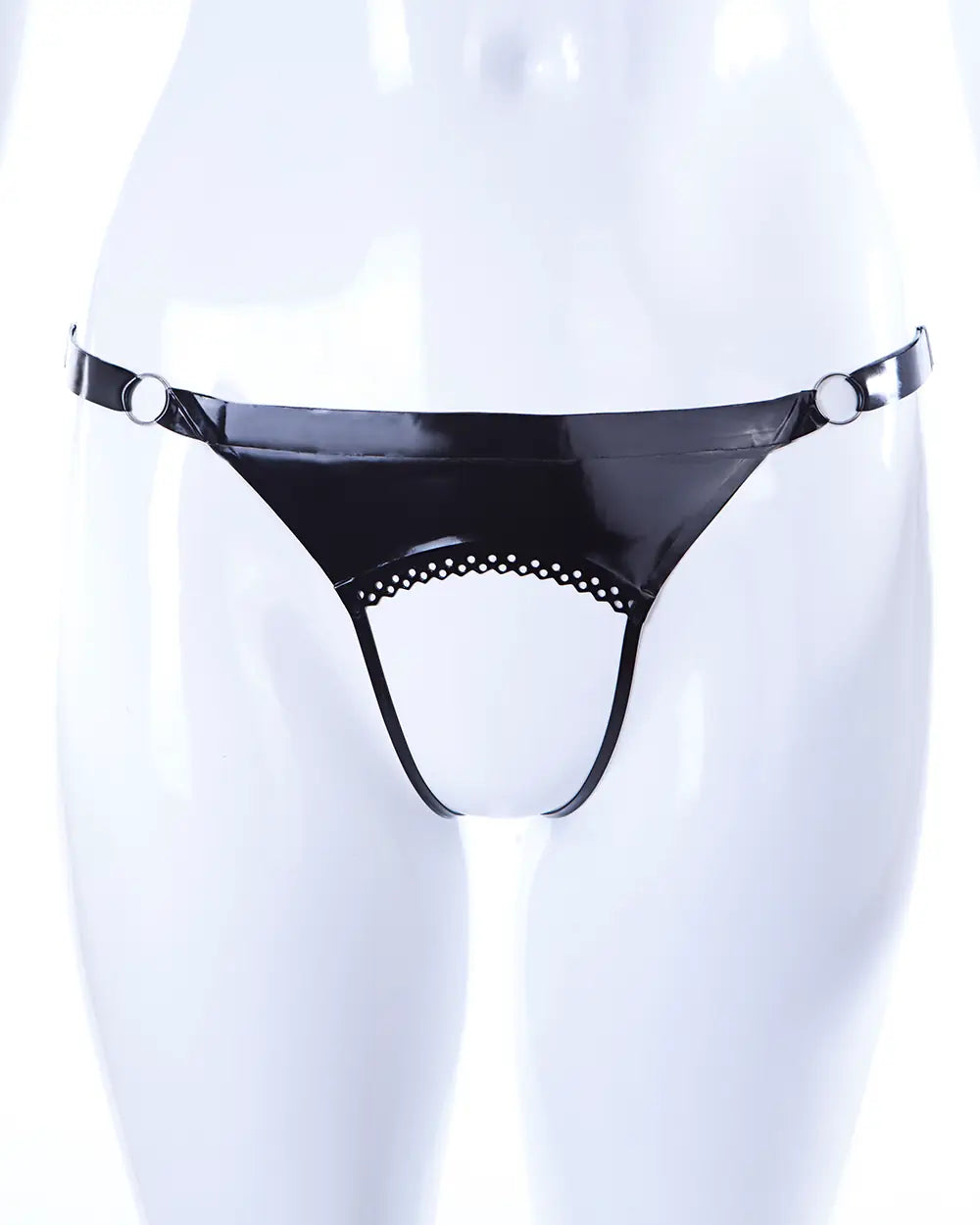 The Open thong with brocade trim is an ideal choice as both a standalone piece and underwear. With its open front and delicate design, it adds a touch of beauty. Additionally, fully adjustable straps on the hips and metallic color sliders and O rings provide intricate detailing.
