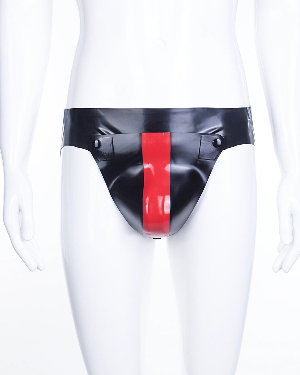 Codpiece jock with spikes, this jock features a 7cms/2,75" waistband with detachable codpiece. Made in thicker grade latex. The opening for the ready to ship codpiece jock is M - 5.5 cm.