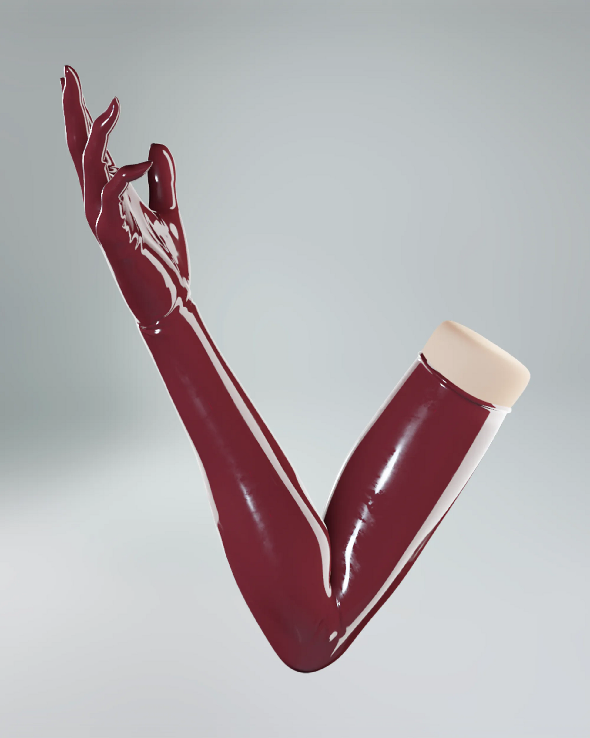 Opera length latex gloves from Uniqdsn, available in a wide range of sizes.