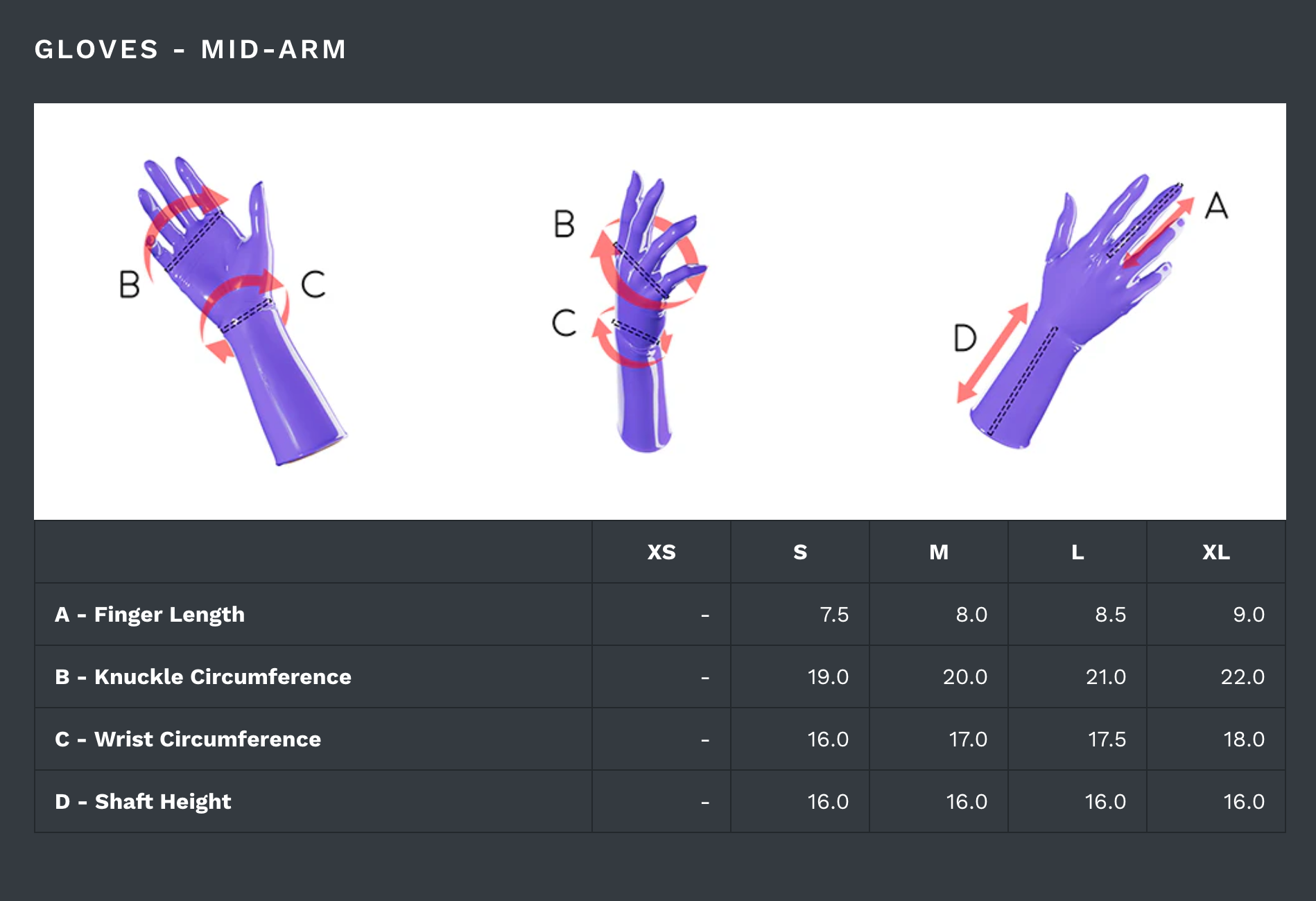 Mid-arm length gloves from UNIQDSN in a wide range of sizes.